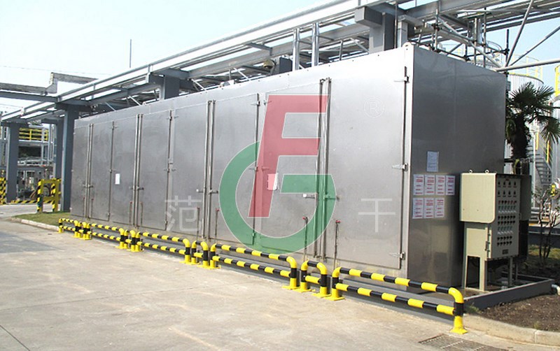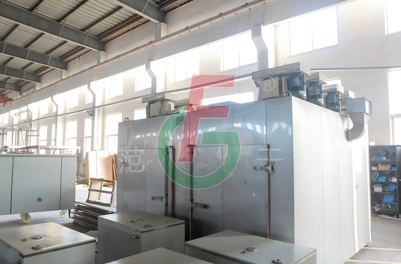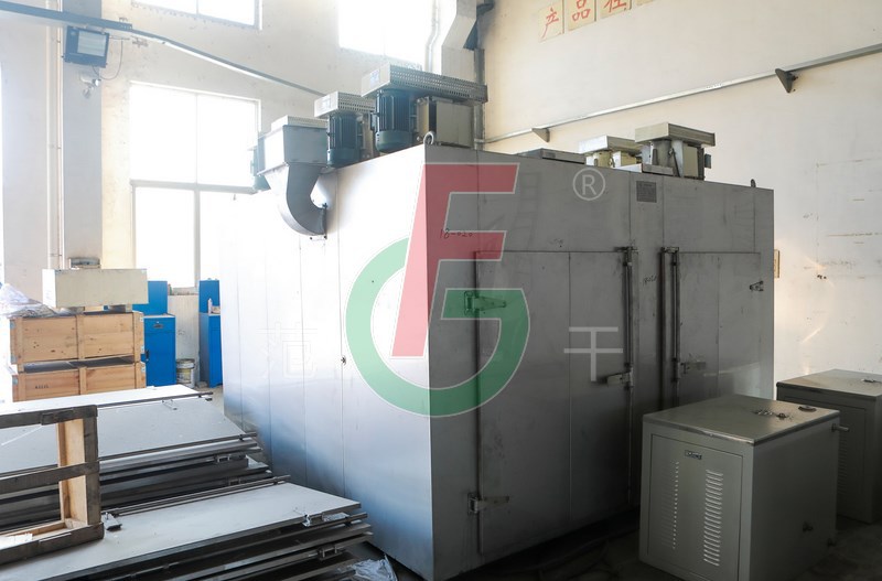 2、利用強制通風作用,箱內(nèi)設(shè)有可調(diào)式分風板,物料干燥均勻。熱源可采用蒸汽、熱水、電、遠紅外,選擇廣泛。